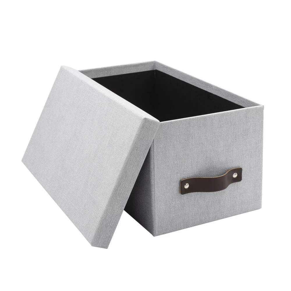 This versatile storage box will keep all those smaller things in place and help you to stay organized and save space. Thanks to its size, the Silvia storage box fits on any shelf and allows easy stacking. Transform any free space into a clever storage space hide things in plain sight! Conceived to withstand everyday use, fitted with a leather handle this box will become a functional decorative feature in any room. Sold in sets of 23. Coated in canvas-like textured paper over a recycled fiberboard core. Mady by hand in Lithuania by Bigso Box of Sweden.