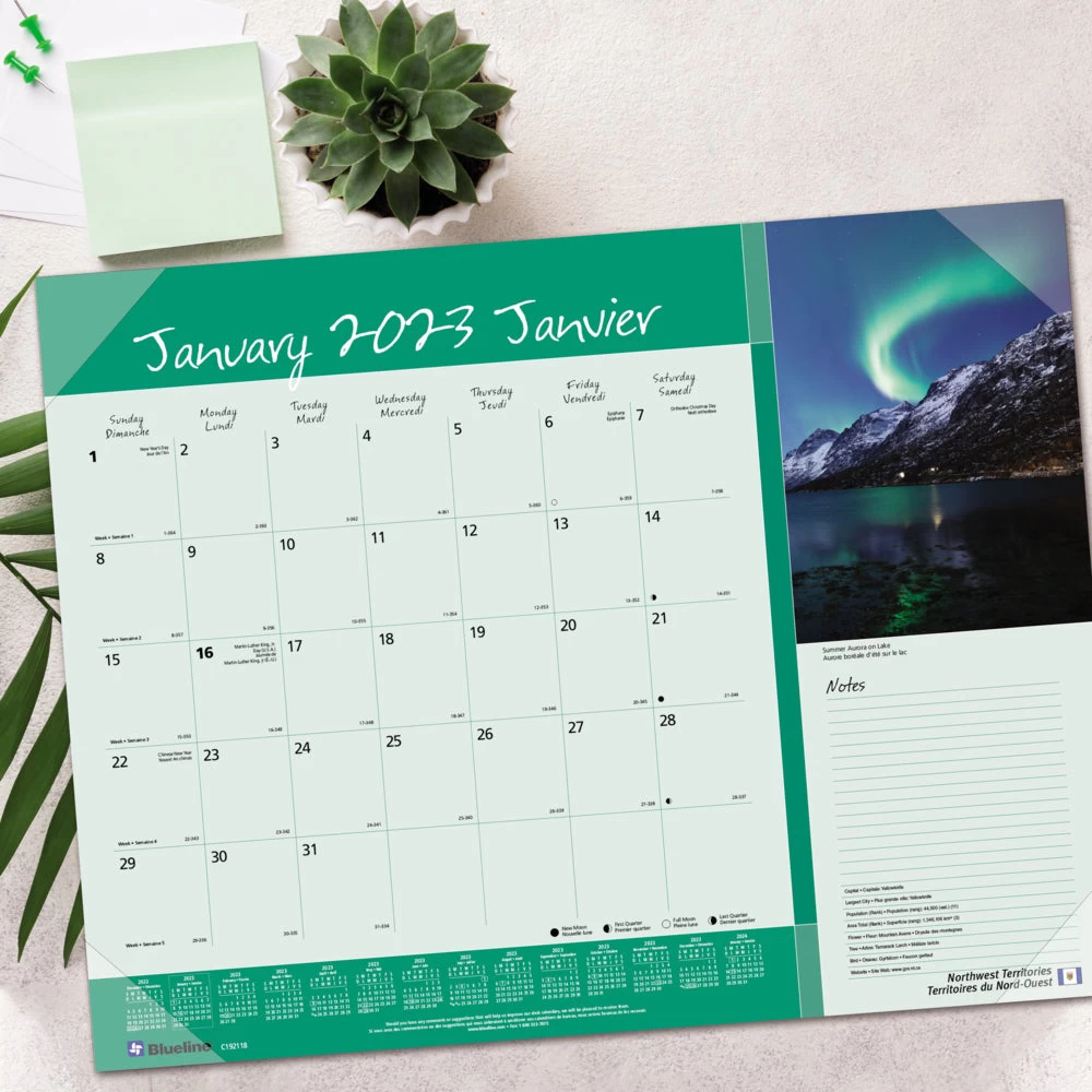 Blueline 2023 Canadian Provinces Monthly Desk Pad Calendar – 17″H X 22″W – Bilingual