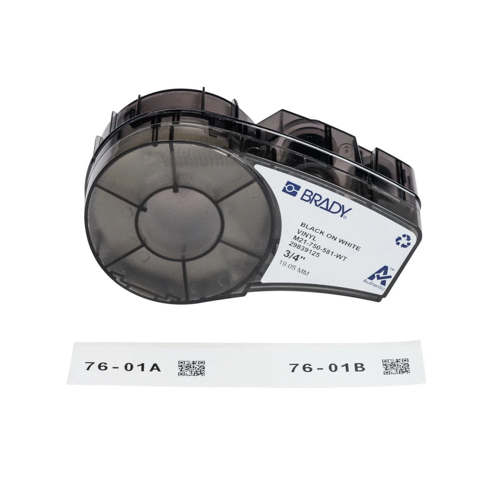 Brady M21 Series Repositionable Vinyl Labels – 0.75″ X 21′ – Black On White