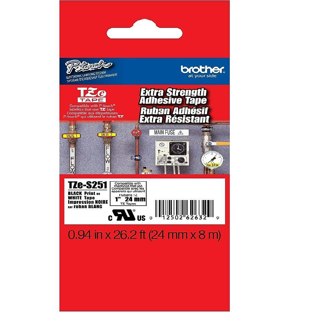 SKU: C3RHC 1687861696 Categories: Label Makers Tapes, Office Machines Tags: 3d_model_available:number:0, Apple_care:number:0, AverageOverallRating:number:4, Bc_l1_handle:ink-office-machines-6, Bc_l1_name:Ink & Office Machines, Bc_l2_handle:office-machines-26, Bc_l2_name:Office Machines, Bc_l3_handle:label-makers-tapes-8536, Bc_l3_name:Label Makers & Tapes, Bc_l4_handle:label-maker-tapes-8538, Bc_l4_name:Label Maker Tapes, Bopis_eligible:False, Brand:Brother, Bulk_buy:number:0, Busdep_class_id:216, Busdep_dropshop_return_co_loc:RV000, Busdep_primary_vendor_id:120441, Ca_max_quantity:number:0, Ca_min_quantity:number:0, Category_filter:Label Maker Tapes, Category_name:Label Makers/Printers, Channel_availability:Both, Class_name:Label Printer Labels & Tapes, Clearance_sku:number:0, Colour_coding_id_labels_334106, Coming_soon:number:0, Consumable:number:0, Department:Label Printer Labels, Electronics_promotion_exclusion:number:0, En_CA, Exclusive:number:0, Export|en_CA, Free_shipping_flag:False, From_akeneo, Gift_with_purchase_gwp:number:0, In_FC:number:0, Ink_and_office_machines_l1|en_CA, Label_maker_tapes_l4_label_makers_tapes_l3_office_machines_l2_ink_office_machines_l1|en_CA, Label_makers_tapes_l3_office_machines_l2_ink_office_machines_l1|en_CA, Made_in_canada:number:0, Metric1:number:0, Metric10:number:0, Metric2:number:0.092, Metric3:number:0, Metric4:number:0, Metric5:number:19, Metric6:number:0, Metric7:number:0, Metric8:number:0, Metric9:number:0, Model_num:TZES251, New_lower_price:number:0, Office_machines_l2_ink_and_office_machines_l1|en_CA, Pack_size:Each, Preferred_max_quantity:number:0, Preferred_min_quantity:number:0, Preorder_flag:False, Product_type:Product, Promotion_Exclusion:False, Return_period:30 Days, Return_to_store:number:0, School_tools_item:number:0, Skuset:encoded:Brother24mmBlackonWhiteTapewithExtraStrengthAdhesive8mTZeS251, Super_category:Shredders / Business Machines, TotalSubmittedReviews:number:6, Upsable:True, Web_status:Kiosk and Web