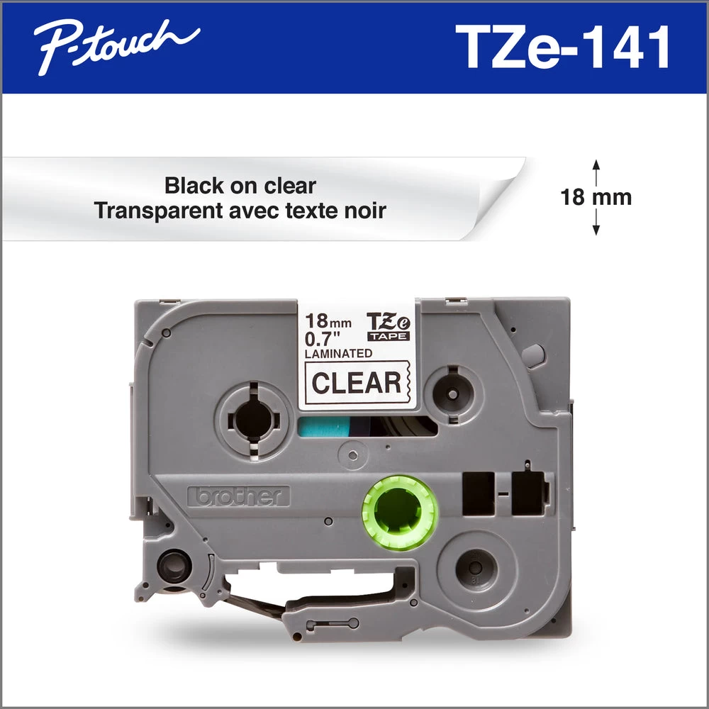 Brother Genuine TZe141 Black On Clear Laminated Tape For P-touch Label Makers, 18 Mm Wide X 8 M Long