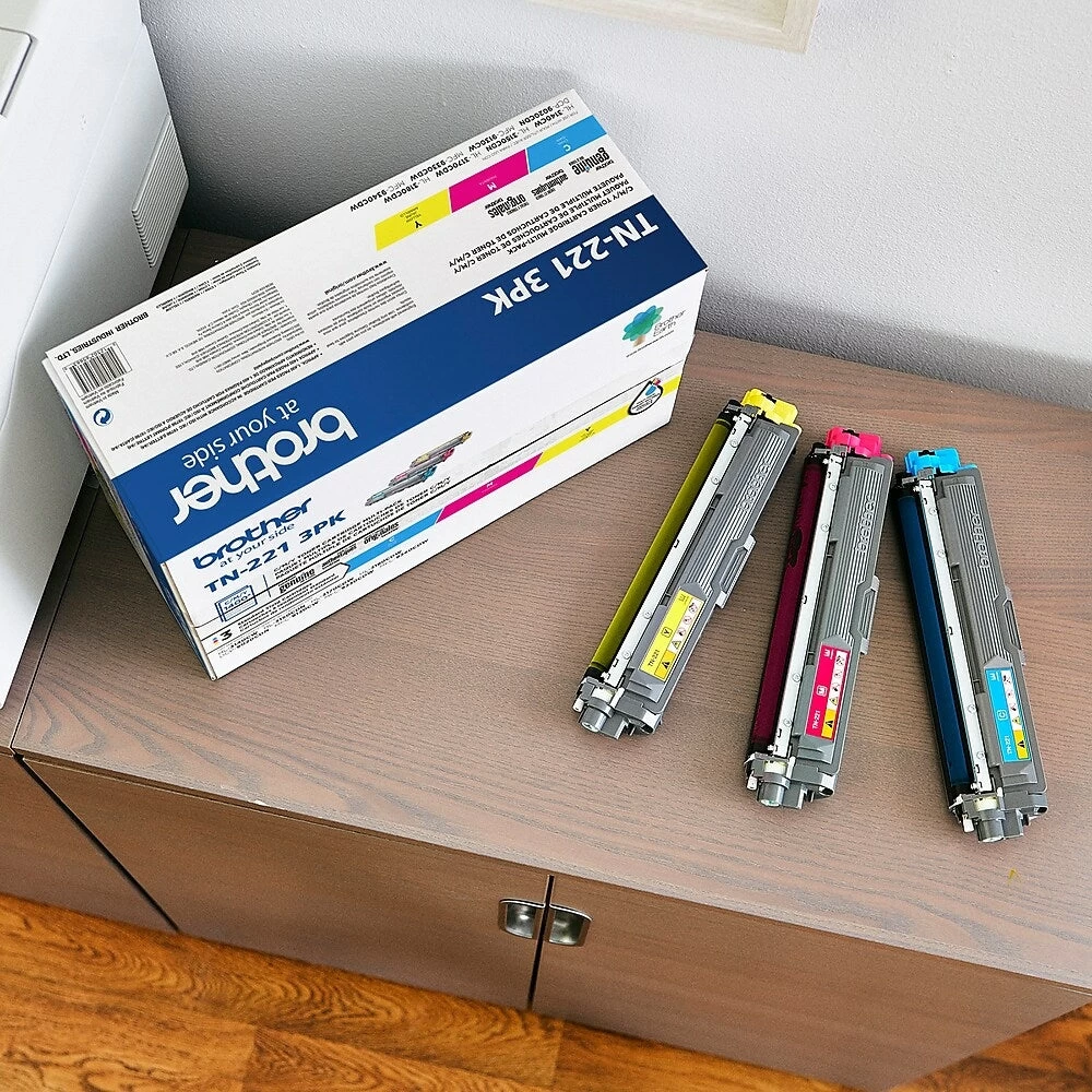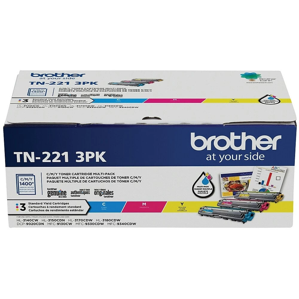 Intelligently engineered to work seamlessly with your Brother printer to produce rich, vivid laser-quality colour prints that last, Brother Genuine TN221 3PK Standard-Yield Colour Toner Cartridges deliver an average 1,400-page yield. For best results, use only Brother Genuine Toner Cartridges. Visit www.brother.ca/en/environment for environmentally responsible cartridge disposal information.