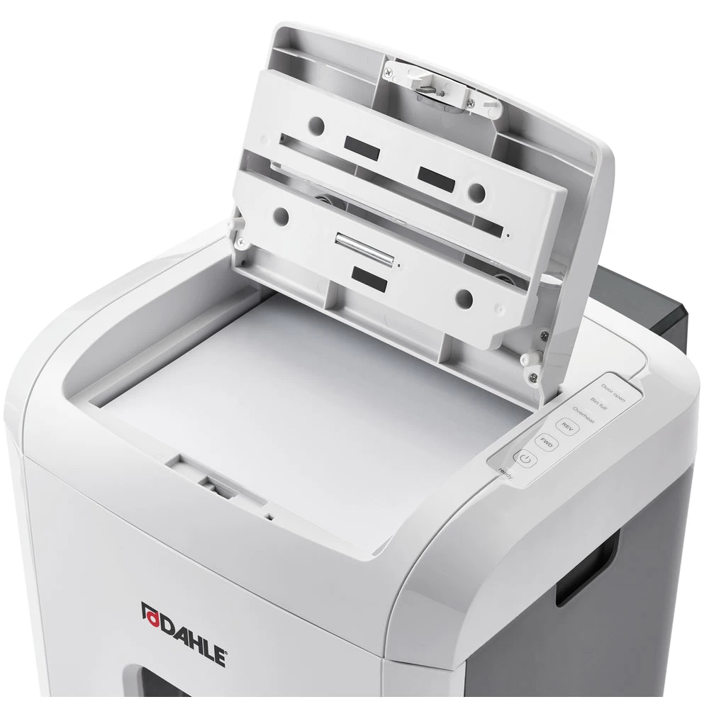 The Dahle ShredMATIC SM 150 is a powerful auto-feed shredder that makes quick work of destroying confidential documents. It features a 150 sheet auto-feed bin, oil-free operation, and automatic jam protection. This P-4 shredder produces a 3/16” x 1/2” particle size and holds up to 7 gallons of shredded waste. SmartPower energy management provides energy savings.