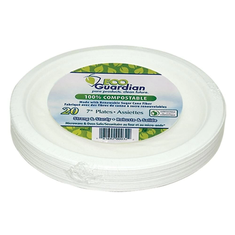 Eco Guardian Compostable Bagasse Plates, Retail Packaging, 7″, 480 Pack (EG-N-A011-S20)