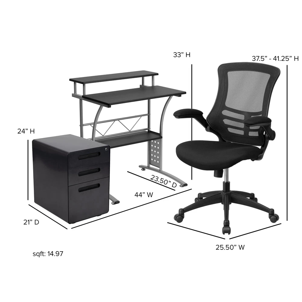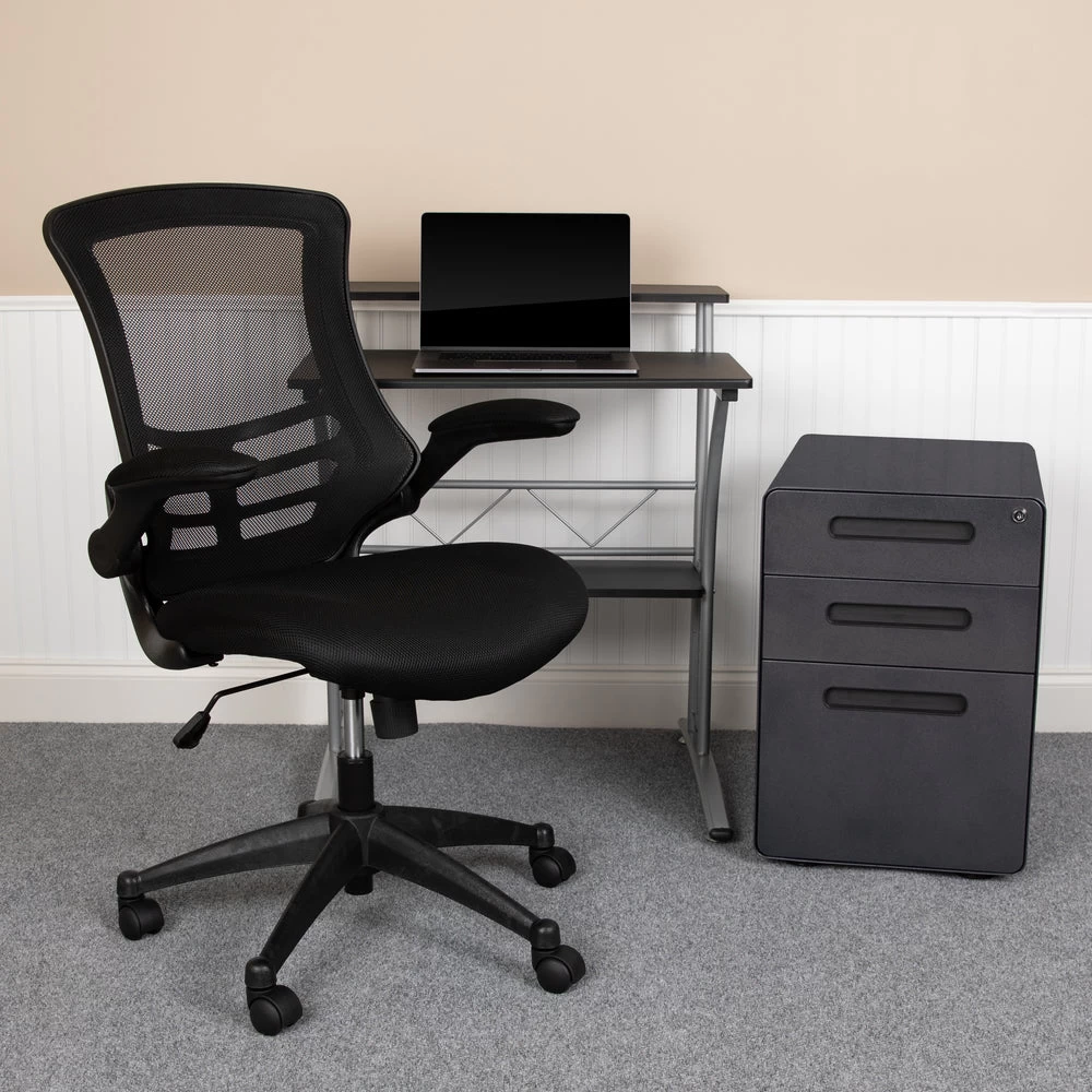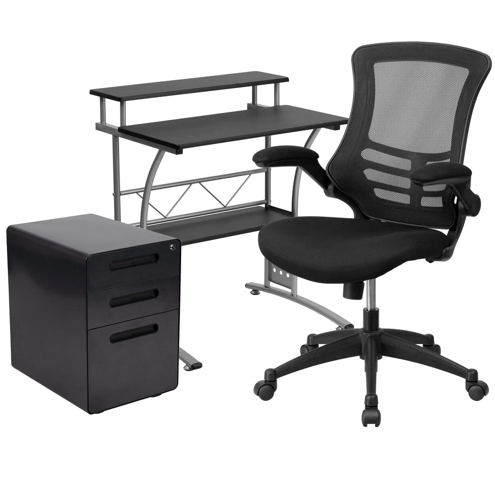 Flash Furniture 3-Piece Set With Black Computer Desk, Ergonomic Mesh Office Chair & Locking Mobile Filing Cabinet