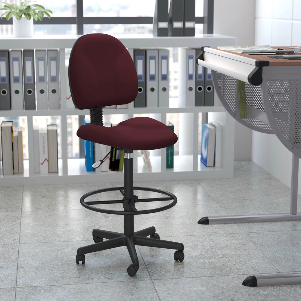 Flash Furniture Burgundy Fabric Drafting Chair (Cylinders: 22.5″-27″H Or 26″-30.5″H)