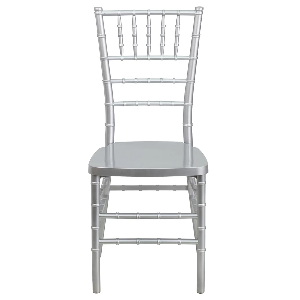 The Silver Resin Chiavari Chair is ideal for weddings, banquets and special events from casual to the most elegant. Constructed of ultra-strong resin and polycarbonate, this chair is very lightweight, yet extremely strong and wobble-free. These beautiful chairs ship fully assembled, can be stacked 8 high for storage.With its durable, lightweight construction and elegant styling, this Chiavari chair will be the prime seating choice for all of your special events, whether indoors or outside.