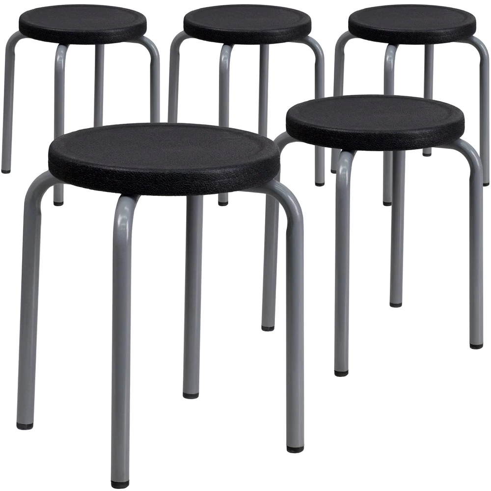Flash Furniture Stackable Stool With Powder Coated Frame – Black/Silver