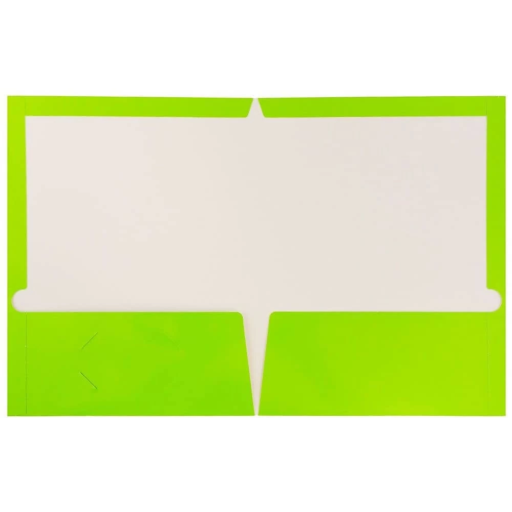 JAM Paper 2 Pocket Laminated Glossy Presentation Folders, Lime Green, 25 Pack