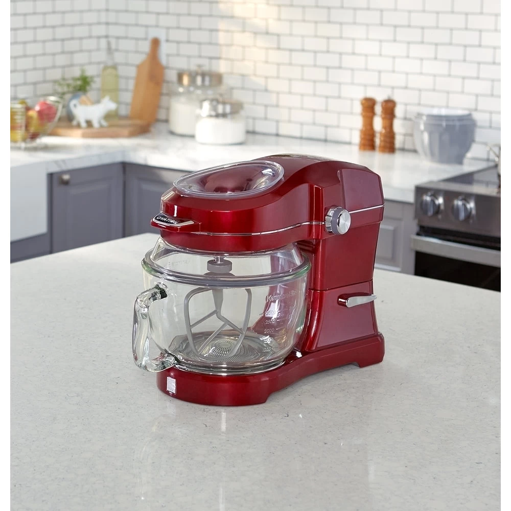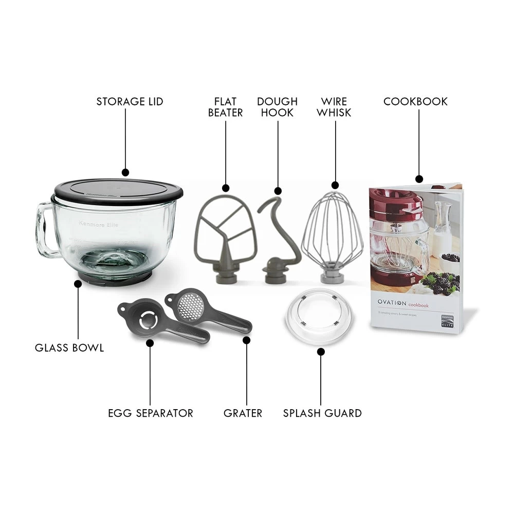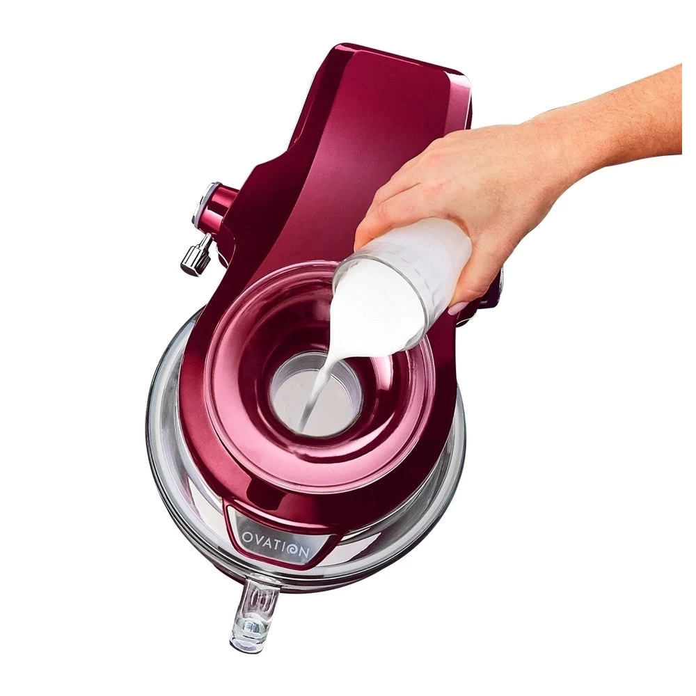 Equal parts innovative design and powerful performance, this elegant tilt-head stand mixer with patented pour-in top design will change the way you bake forever. Experience 10 speeds of high-powered planetary mixing for the versatility to prepare whatever your heart desires with professional results. With a powerful motor, heavy-duty glass mixing bowl, 360-degree splash guard, LED lighting, and premium accessories, the Ovation mixer is a game-changer for home bakers and chefs.