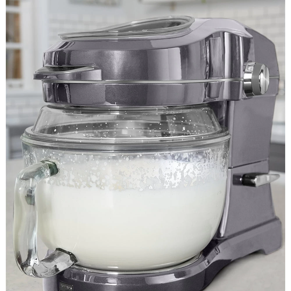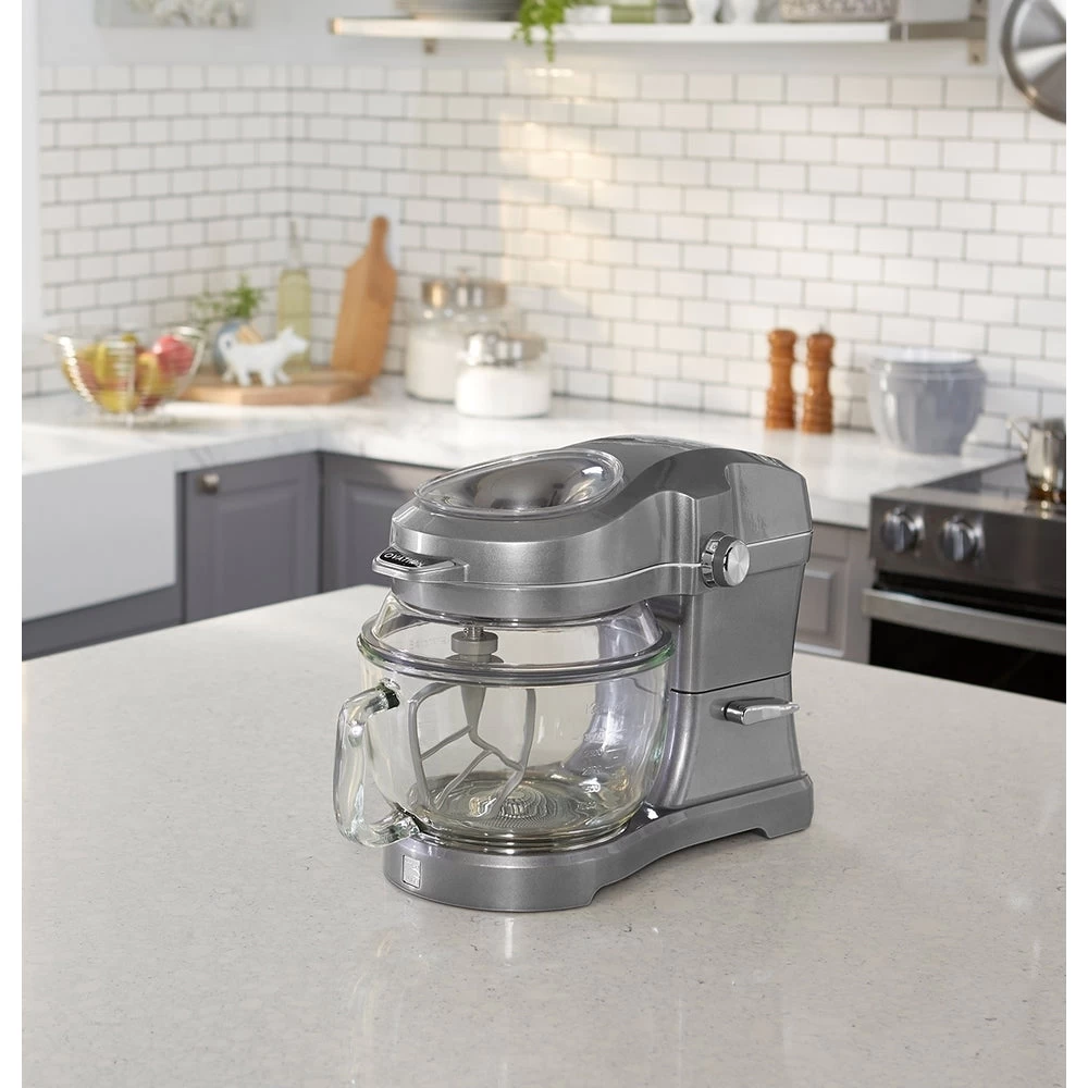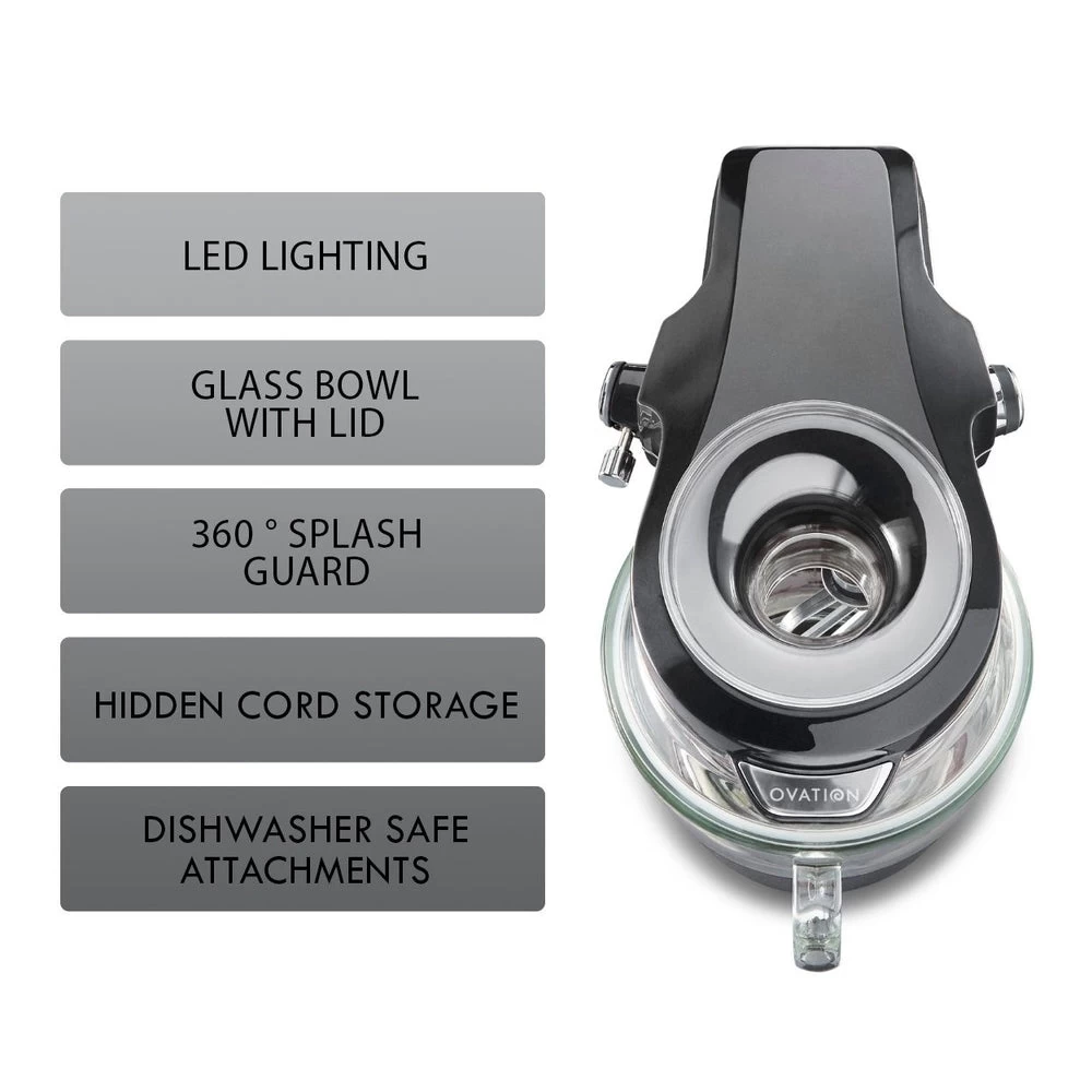 Equal parts innovative design and powerful performance, this elegant tilt-head stand mixer with patented pour-in top design will change the way you bake forever. Experience 10 speeds of high-powered planetary mixing for the versatility to prepare whatever your heart desires with professional results. With a powerful motor, heavy-duty glass mixing bowl, 360-degree splash guard, LED lighting, and premium accessories, the Ovation mixer is a game-changer for home bakers and chefs.