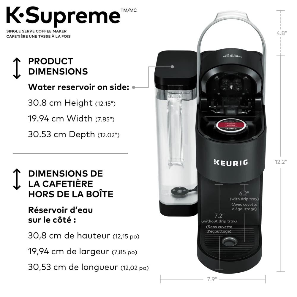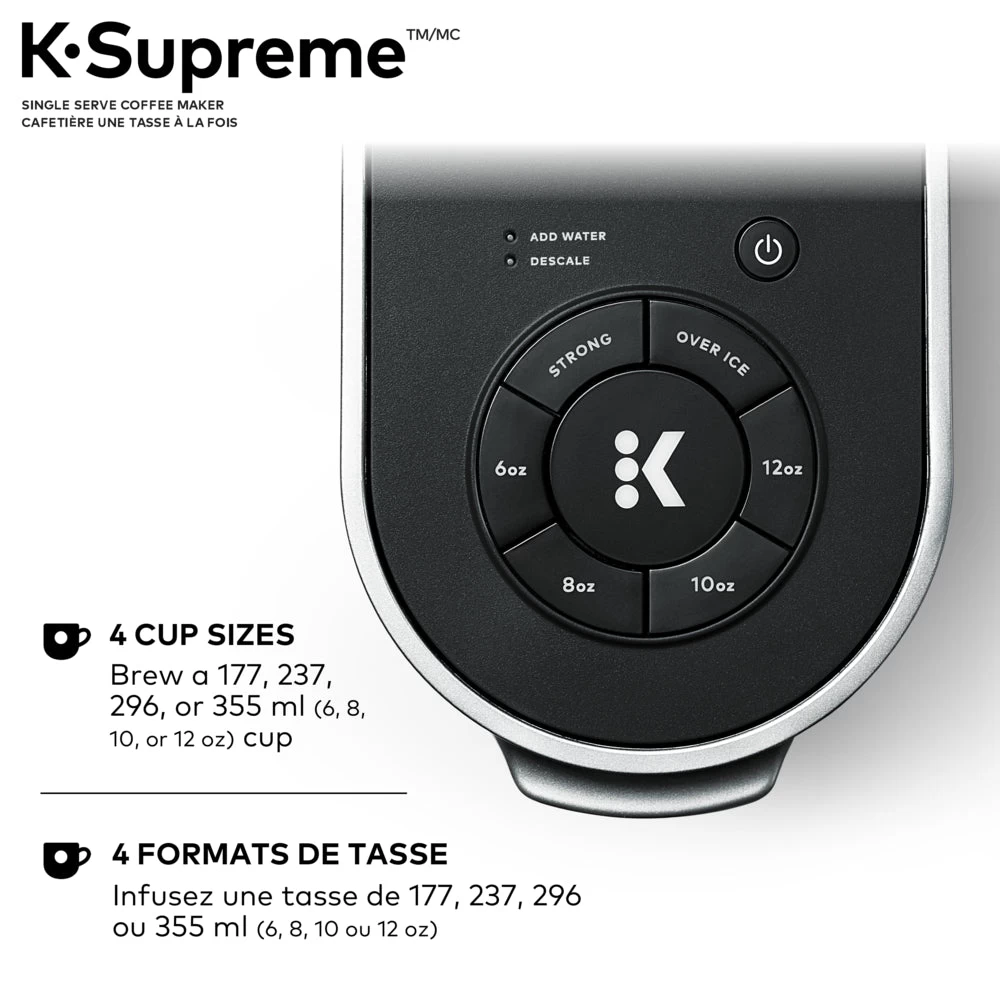 Elevate your coffee experience to delicious new heights with the Keurig K-Supreme single serve coffee maker. With innovative multiStream technology that extracts full flavour and aroma from your beverage, and individual settings for strong and iced coffee, and the K-Supreme coffee maker delivers an exceptionally flavorful experience in every cup.