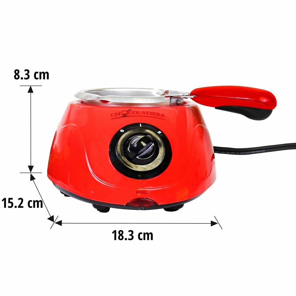 Koolatron Chocolatier is very affordable, compact and creates chocolate covered strawberries, peanuts, raisins, coffee beans, or even covers your ice cream in chocolate for a homemade ice cream bar. Chocolatier will help you to make truffles, or simply melt chocolate into a variety of shapes and sizes, including hearts, Christmas trees, stars, and more. This small melting pot will remove the need to ‘hurry’ through dipping your baking, because you will not have to worry about the chocolate burning. And no more melting over boiling water. Koolatron Chocolatier is different because it’s an electric chocolate melting pot, so the chocolate stays melted and soft. As chocolatier is an electric chocolate melting pot, you don’t need to boil water or turn your stove on.
