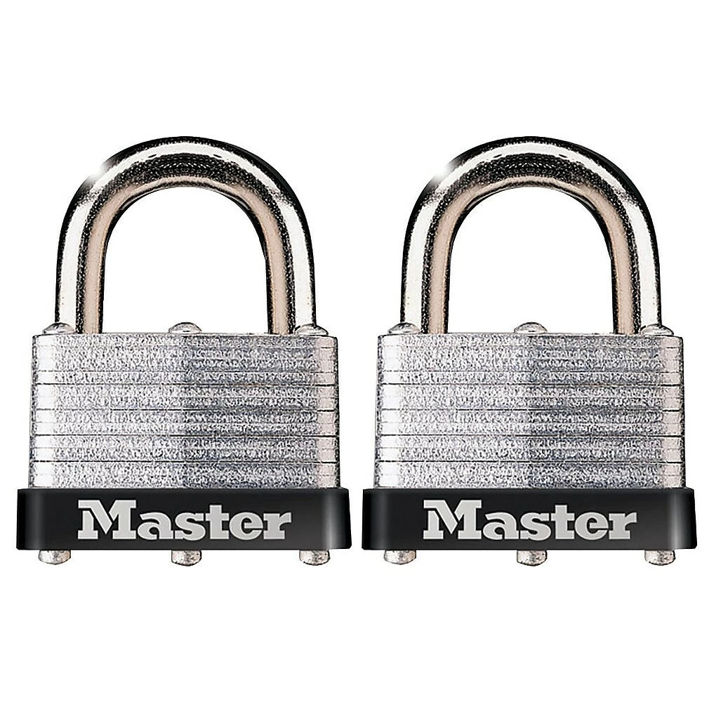Master Lock 38mm Warded Laminated Steel Body Padlock, Keyed A-Like, 2 Pack