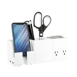 Bostitch Office Konnect Desk Organizer Power Base With Phone Stand – White