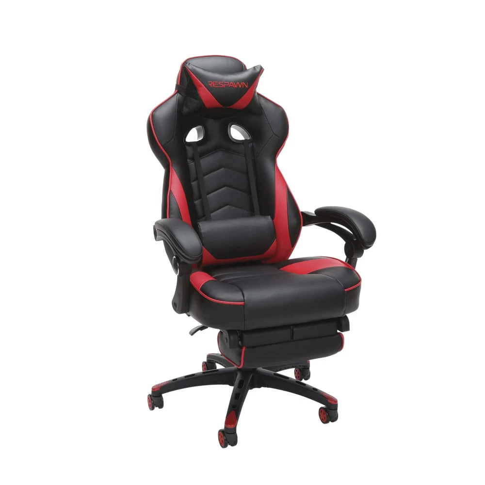 RESPAWN 110 Racing Style Reclining Ergonomic Leather Gaming Chair With Footrest – Red