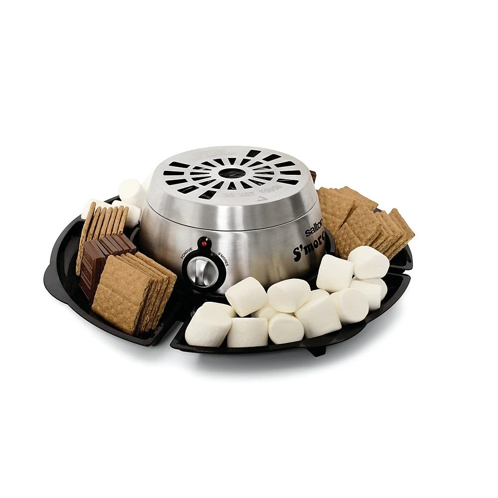 Who said S’mores were for Summer? With the S’mores maker you can make your delicious treats indoors all year round. The heating element has no open flame so there’s no need for a campfire! The serving tray has enough compartments to fit all your s’mores kit ingredients and conveniently includes 4 roasting forks.