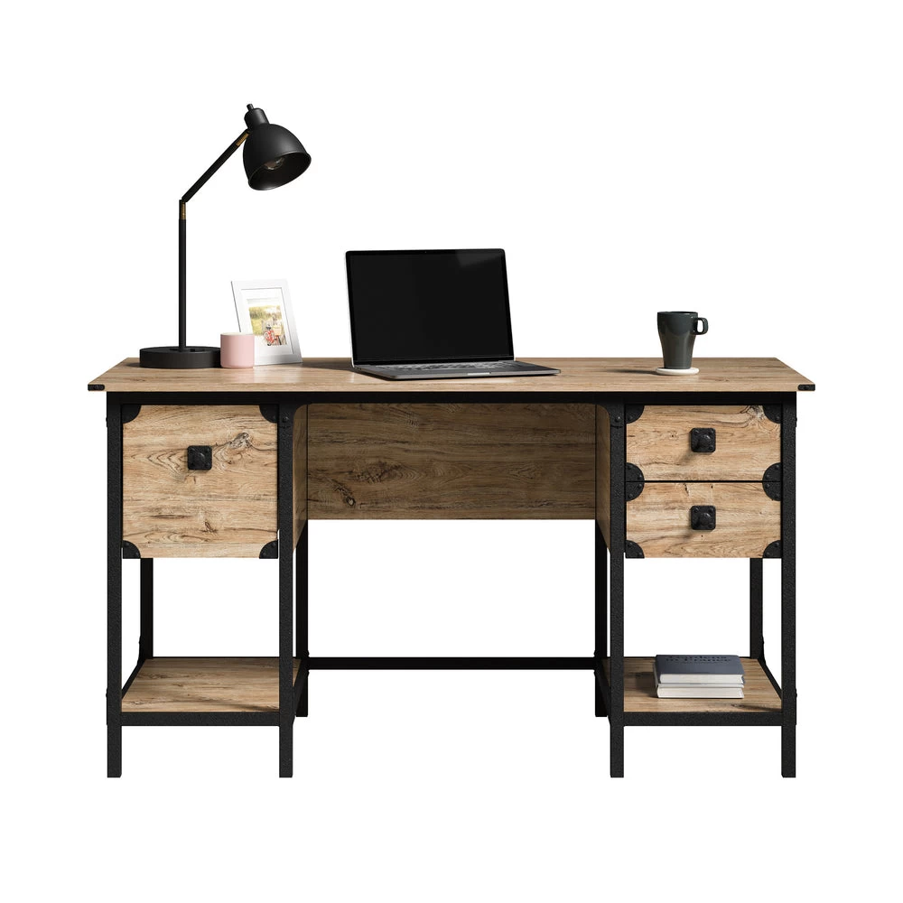 Sauder Steel River Desk With Drawers – Milled Mesquite (427653)