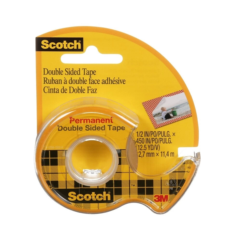 Scotch Permanent Double Sided Tape is a no-mess alternative to glue for light-duty attaching and mounting tasks. It is coated with a permanent adhesive on both sides and is safe for use on photos.