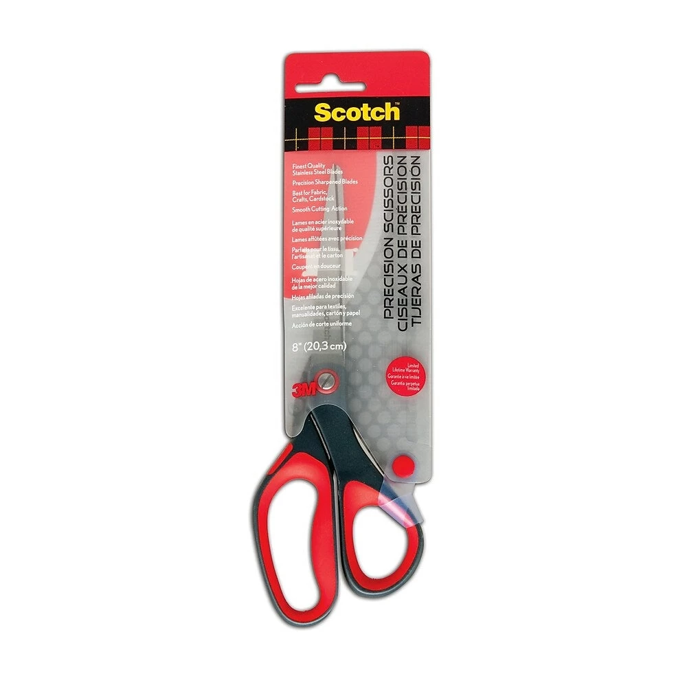 SKU: C3RHC 1687923902 Categories: Office, Scissors and Trimmers Tags: 3d_model_available:number:0, 3m_scotch_brand_craft_decorative_tapes|en_CA, 3m_scotch_brand_speciality_tapes|en_CA, Apple_care:number:0, AverageOverallRating:number:4.5, AverageOverallRating:number:4.5455, AverageOverallRating:number:4.5833, AverageOverallRating:number:4.6154, Bc_l1_handle:office-supplies-189, Bc_l1_name:Office Supplies, Bc_l2_handle:office-210, Bc_l2_name:Office, Bc_l3_handle:scissors-trimmers-213, Bc_l3_name:Scissors & Trimmers, Bc_l4_handle:scissors-6733, Bc_l4_name:Scissors, Bopis_eligible:False, Brand:Scotch, Bulk_buy:number:0, Busdep_class_id:789, Busdep_dropshop_return_co_loc:0, Busdep_primary_vendor_id:100851, Business_essentials_event|en_CA, Ca_max_quantity:number:0, Ca_min_quantity:number:0, Category_filter:Scissors, Category_name:Essential Office Supplies, Channel_availability:Both, Class_name:Scissors, Clearance_sku:number:0, Coming_soon:number:0, Consumable:number:0, Department:Office Tools, Electronics_promotion_exclusion:number:0, En_CA, Exclusive:number:0, Export|en_CA, Free_shipping_flag:False, From_akeneo, Gift_with_purchase_gwp:number:0, In_FC:number:1, Made_in_canada:number:0, Metric1:number:161, Metric10:number:0, Metric2:number:1.150, Metric3:number:2278, Metric4:number:235, Metric5:number:275, Metric6:number:0, Metric7:number:240, Metric8:number:0, Metric9:number:0, Model_num:1448ESF, Model_series_22998:Precision, New_lower_price:number:0, Office_l2_office_supplies_l1|en_CA, Office_supplies_l1|en_CA, Pack_size:Each, Preferred_max_quantity:number:0, Preferred_min_quantity:number:0, Preorder_flag:False, Product_type:Product, Promotion_Exclusion:False, Return_period:30 Days, Return_to_store:number:0, School_tools_item:number:0, Scissor_colour_19169:Red, Scissor_handle_grip_19168:Left & Right Handed, Scissor_handle_shape_19166:Straight, Scissor_pack_size_num_pack_19170:number:1, Scissor_tip_19167:Pointed, Scissors_333789, Scissors_and_rulers|en_CA, Scissors_and_trimmers_l3_office_l2_office_supplies_l1|en_CA, Scissors_l4_scissors_and_trimmers_l3_office_l2_office_supplies_l1|en_CA, Site_merch_ops|en_CA, Skuset:encoded:ScotchPrecisionScissors1448ESF203mm8, Super_category:Office Supplies, TotalSubmittedReviews:number:13, Upc_code:051141254692, Upsable:True, Web_status:Kiosk and Web