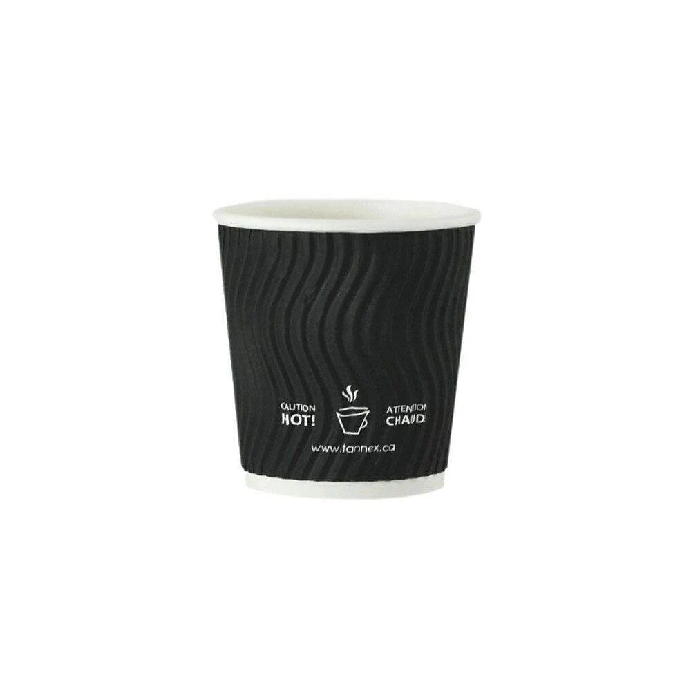 Tannex Double Wall Ripple Paper Coffee Cup, 4oz/118ml, Black, 1000 Pack