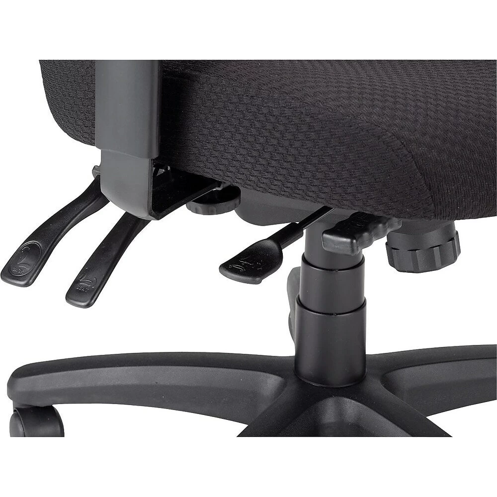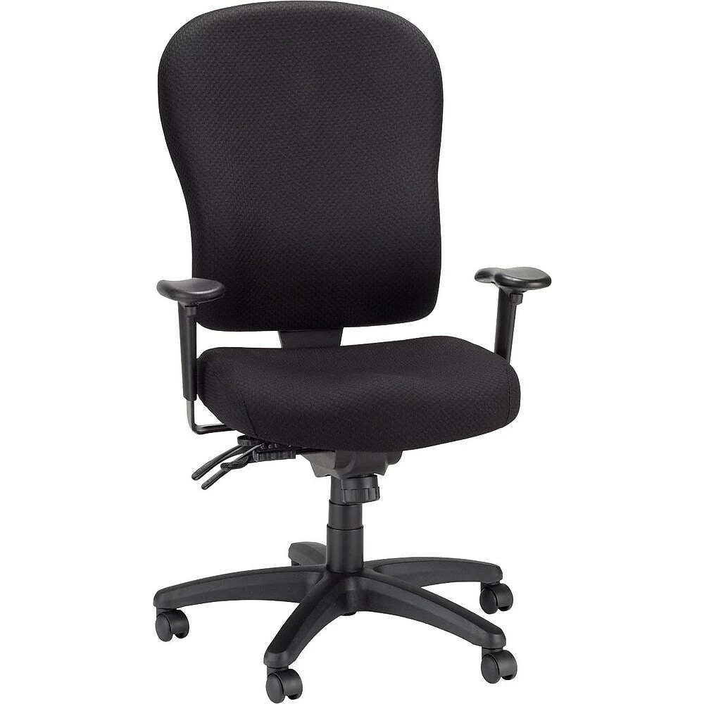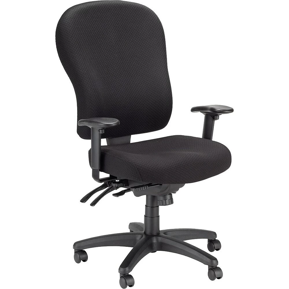 Sit back and relax in a Tempur-Pedic Fabric High-Back Task Chair that is designed to provide cushioned support and ergonomic contouring for all-day comfort. The chair’s seat features Tempur material that conforms to your body, and a contoured back with lumbar curve supports your lower back. Simple controls let you independently adjust arm height and width and seat and back height for a customized setup. A five-star base with rolling casters helps you to easily move around your workspace throughout your busy day.