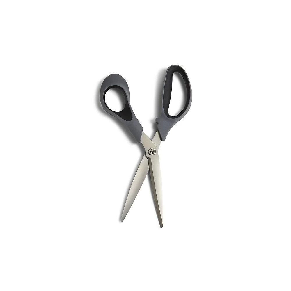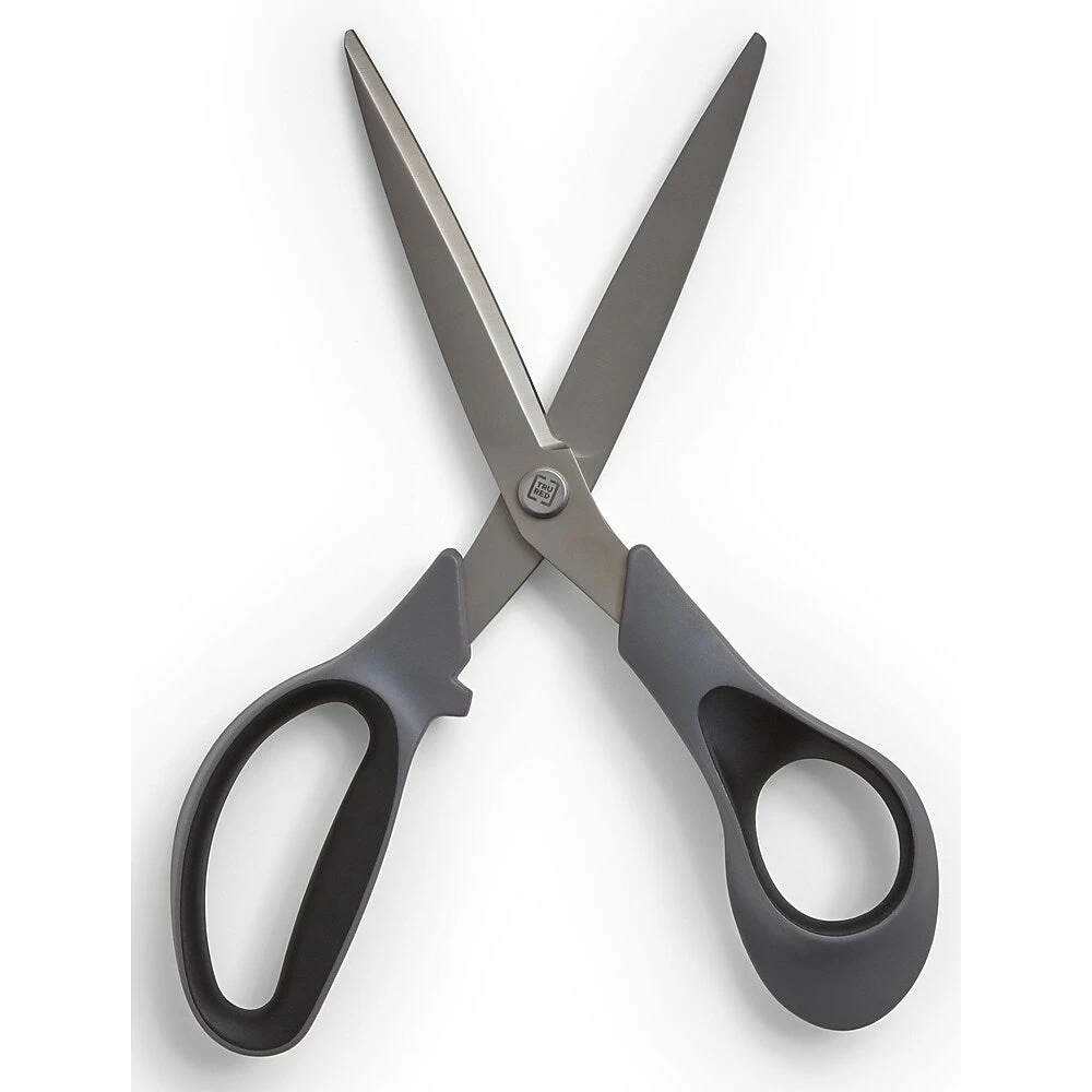 TRU RED 8-inch straight-handle scissors have an innovative 3-D curved blade to maintain sharpness and provide precise cuts each and every time. The titanium coating adds durability to blade strength and sharpness, giving a consistent cut over time. The ergonomic soft-touch handles is ideal for right-handed cutters making these a great tool for the office.