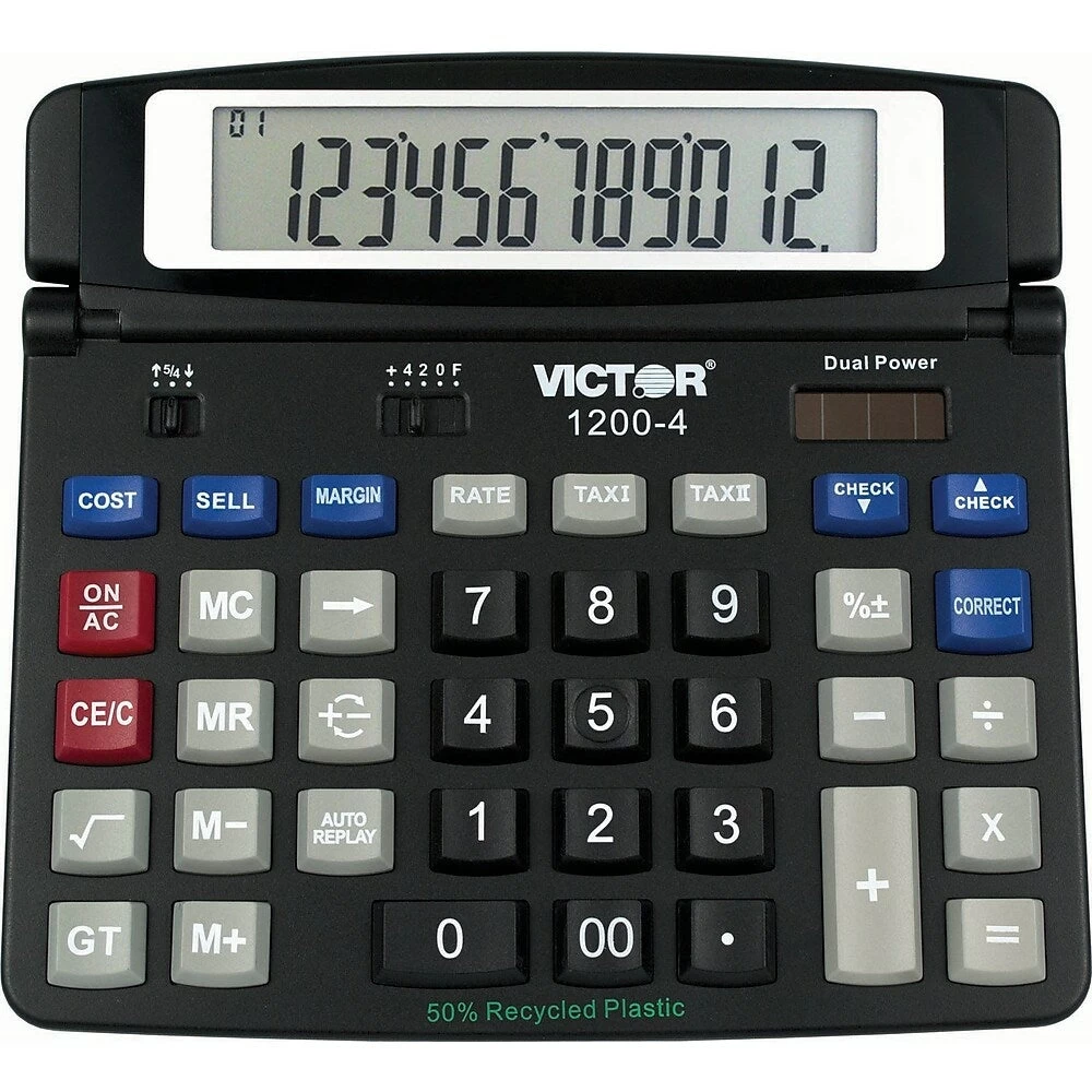 SKU: C3RHC 1687862430 Category: Office Machines Tags: 3d_model_available:number:0, Apple_care:number:0, AverageOverallRating:number:0, Basic_calculators_l4_calculators_l3_office_machines_l2_ink_and_office_machines_l1|en_CA, Bc_l1_handle:ink-office-machines-6, Bc_l1_name:Ink & Office Machines, Bc_l2_handle:office-machines-26, Bc_l2_name:Office Machines, Bc_l3_handle:calculators-31, Bc_l3_name:Calculators, Bc_l4_handle:basic-calculators-6667, Bc_l4_name:Basic Calculators, Bopis_eligible:False, Brand:Victor, Bulk_buy:number:0, Busdep_class_id:251, Busdep_dropshop_return_co_loc:RW200, Busdep_primary_vendor_id:150251, Ca_max_quantity:number:0, Ca_min_quantity:number:0, Calculators_custom_1000024, Calculators_l3_office_machines_l2_ink_and_office_machines_l1|en_CA, Category_filter:Basic Calculators, Category_name:Calculators, Channel_availability:Both, Class_name:Basic Calculators, Clearance_sku:number:0, Coming_soon:number:0, Consumable:number:0, Department:Calculators, Display_digits_8158:12, Electronics_promotion_exclusion:number:0, En_CA, Exclusive:number:0, Export|en_CA, Free_shipping_flag:False, From_akeneo, Gift_with_purchase_gwp:number:0, In_FC:number:0, Ink_and_office_machines_l1|en_CA, Made_in_canada:number:0, Metric1:number:0, Metric10:number:0, Metric2:number:0.051, Metric3:number:0, Metric4:number:0, Metric5:number:19, Metric6:number:0, Metric7:number:0, Metric8:number:0, Metric9:number:0, Model_num:1200-4, New_lower_price:number:0, Office_machines_l2_ink_and_office_machines_l1|en_CA, Pack_size:Each, Power_source_8162:Battery Operated + Solar Powered, Preferred_max_quantity:number:0, Preferred_min_quantity:number:0, Preorder_flag:False, Product_type:Product, Promotion_Exclusion:False, Return_period:30 Days, Return_to_store:number:0, School_tools_item:number:0, Skuset:Victor 1200-4 12 Digit Desktop Display Calculator, Super_category:Shredders / Business Machines, Tilt_display_21358:Yes, TotalSubmittedReviews:number:0, Upsable:True, Web_status:Kiosk and Web, Weight_8029:263.7 g