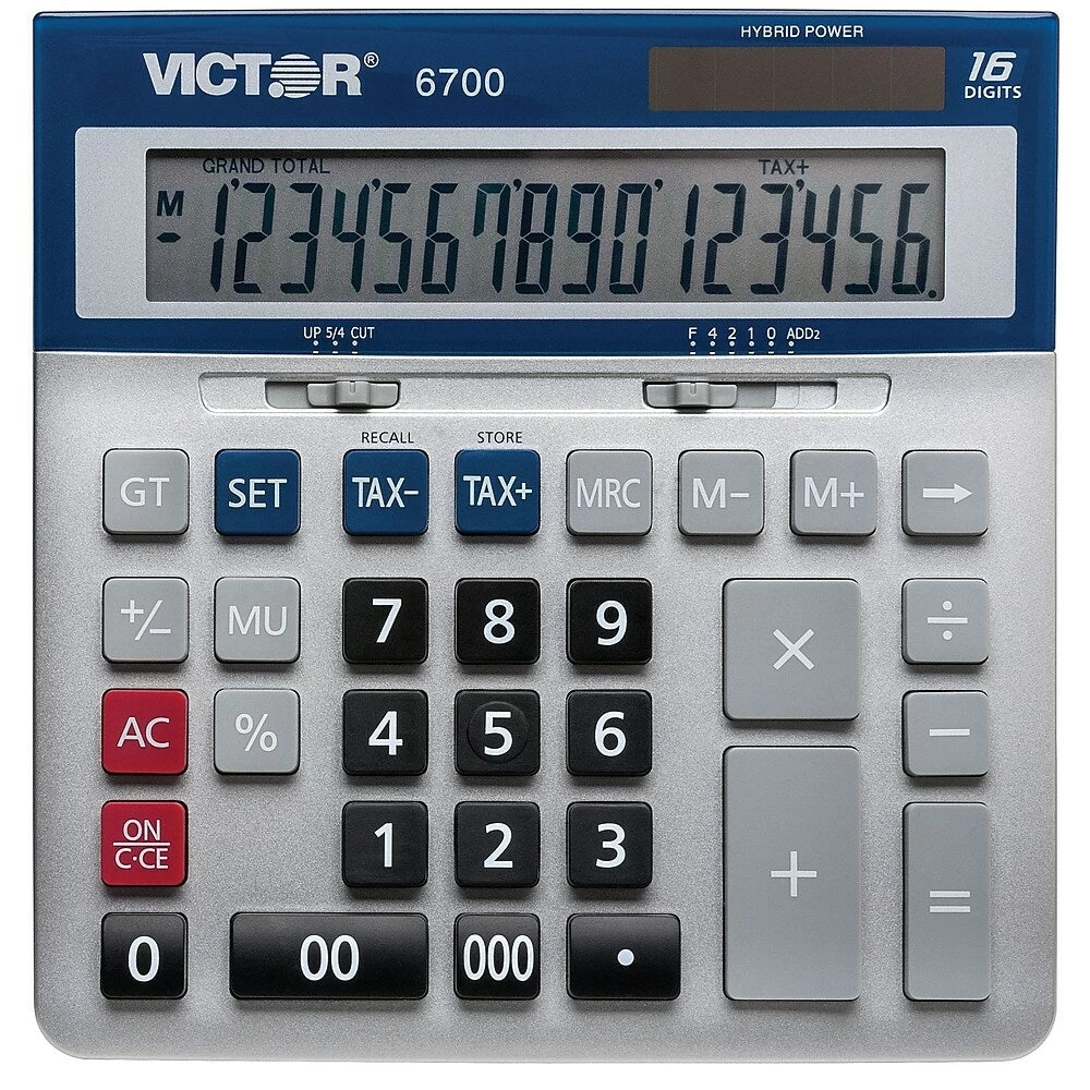 SKU: C3RHC 1687862401 Categories: Calculators, Office Machines Tags: 3d_model_available:number:0, Apple_care:number:0, AverageOverallRating:number:1, AverageOverallRating:number:3.0000, Basic_calculators_l4_calculators_l3_office_machines_l2_ink_and_office_machines_l1|en_CA, Bc_l1_handle:ink-office-machines-6, Bc_l1_name:Ink & Office Machines, Bc_l2_handle:office-machines-26, Bc_l2_name:Office Machines, Bc_l3_handle:calculators-31, Bc_l3_name:Calculators, Bc_l4_handle:basic-calculators-6667, Bc_l4_name:Basic Calculators, Bopis_eligible:False, Brand:Victor, Bulk_buy:number:0, Busdep_class_id:251, Busdep_dropshop_return_co_loc:RW200, Busdep_primary_vendor_id:150251, Ca_max_quantity:number:0, Ca_min_quantity:number:0, Calculators_custom_1000024, Calculators_l3_office_machines_l2_ink_and_office_machines_l1|en_CA, Category_filter:Basic Calculators, Category_name:Calculators, Channel_availability:Both, Class_name:Basic Calculators, Clearance_sku:number:0, Coming_soon:number:0, Consumable:number:0, Department:Calculators, Display_digits_8158:16, Electronics_promotion_exclusion:number:0, En_CA, Exclusive:number:0, Export|en_CA, Free_shipping_flag:False, From_akeneo, Gift_with_purchase_gwp:number:0, In_FC:number:0, Ink_and_office_machines_l1|en_CA, Made_in_canada:number:0, Metric1:number:2, Metric10:number:0, Metric2:number:0.134, Metric3:number:122, Metric4:number:3, Metric5:number:26, Metric6:number:0, Metric7:number:2, Metric8:number:0, Metric9:number:0, Model_num:6700, New_lower_price:number:0, Office_machines_l2_ink_and_office_machines_l1|en_CA, Pack_size:Each, Power_source_8162:Battery Operated + Solar Powered, Preferred_max_quantity:number:0, Preferred_min_quantity:number:0, Preorder_flag:False, Product_type:Product, Promotion_Exclusion:False, Return_period:30 Days, Return_to_store:number:0, School_tools_item:number:0, Skuset:Victor 6700 16 Digit Extra Large Desktop Calculator, Super_category:Shredders / Business Machines, Tilt_display_21358:Yes, TotalSubmittedReviews:number:2, Upsable:True, Web_status:Kiosk and Web, Weight_8029:170.1 g