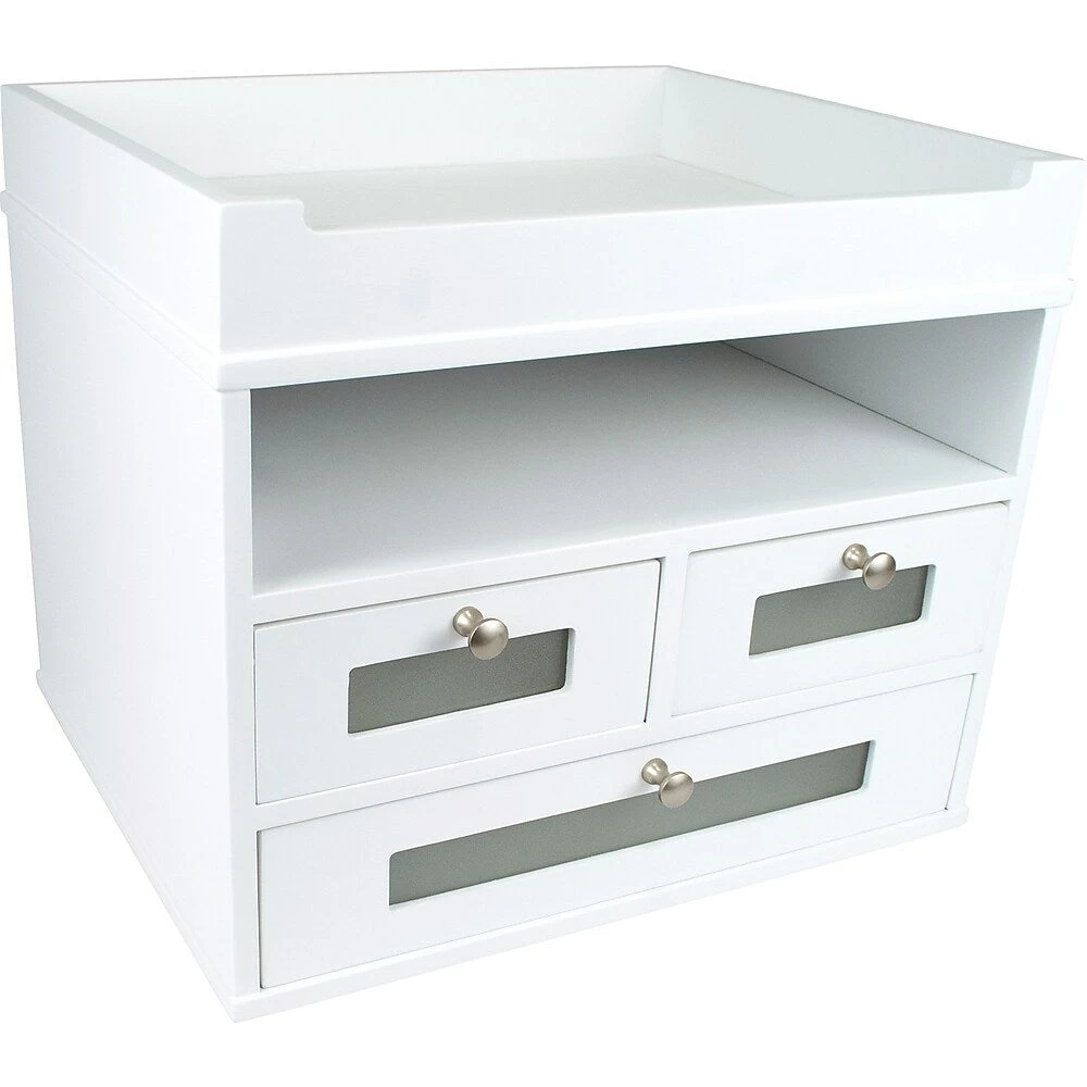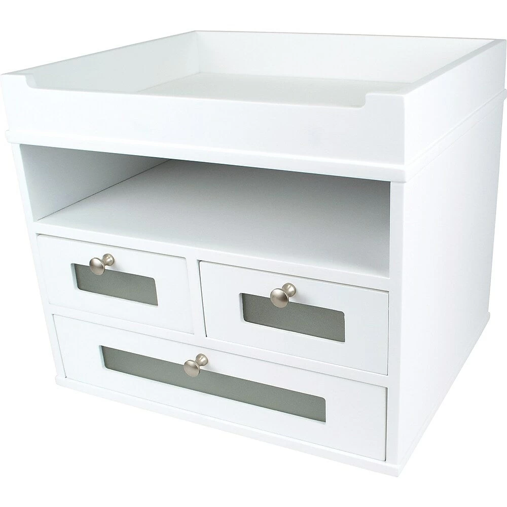 Make the most out of limited space with the tower organizer. Includes a letter tray, shelf and three drawers combined into a footprint only slightly larger than a notebook