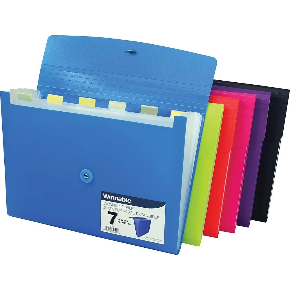 SKU: C3RHC 1687891955 Category: Office Tags: 3d_model_available:number:0, Apple_care:number:0, AverageOverallRating:number:0, Bc_l1_handle:office-supplies-189, Bc_l1_name:Office Supplies, Bc_l2_handle:office-210, Bc_l2_name:Office, Bc_l3_handle:folders-filing-211, Bc_l3_name:Folders & Filing, Bc_l4_handle:expanding-files-6719, Bc_l4_name:Expanding Files, Bopis_eligible:True, Brand:Winnable, Bulk_buy:number:0, Busdep_class_id:984, Busdep_dropshop_return_co_loc:0, Busdep_primary_vendor_id:101391, Ca_max_quantity:number:0, Ca_min_quantity:number:0, Category_filter:Expanding Files, Category_name:encoded:FoldersFilingFileStorage, Channel_availability:Both, Class_name:Expanding Files, Clearance_sku:number:0, Coming_soon:number:0, Consumable:number:0, Department:Filing & File Storage, Electronics_promotion_exclusion:number:0, En_CA, Exclusive:number:0, Expandable_file_type_19494:Desktop File, Expanding_files_333749, Expanding_files_l4_folders_and_filing_l3_office_l2_office_supplies_l1|en_CA, Export|en_CA, Folder_closure_type_19496:Plastic Tie, Folder_colour_19484:Assorted, Folder_size_19482:Letter, Folders_and_filing_l3_office_l2_office_supplies_l1|en_CA, Free_shipping_flag:False, From_akeneo, Gift_with_purchase_gwp:number:0, In_FC:number:1, Made_in_canada:number:0, Metric1:number:12, Metric10:number:0, Metric2:number:2.050, Metric3:number:214, Metric4:number:25, Metric5:number:173, Metric6:number:0, Metric7:number:19, Metric8:number:0, Metric9:number:0, Model_num:2144, New_lower_price:number:0, Num_of_tabs_8318:6 - 10 Tabs, Office_l2_office_supplies_l1|en_CA, Office_supplies_l1|en_CA, Pack_size:Each, Preferred_max_quantity:number:0, Preferred_min_quantity:number:0, Preorder_flag:False, Product_type:Product, Promotion_Exclusion:False, Return_period:30 Days, Return_to_store:number:0, School_tools_item:number:0, Skuset:Winnable® 7 Pocket Expanding Poly File, Super_category:Office Supplies, TotalSubmittedReviews:number:0, Upc_code:065479021444, Upsable:True, Web_status:Kiosk and Web